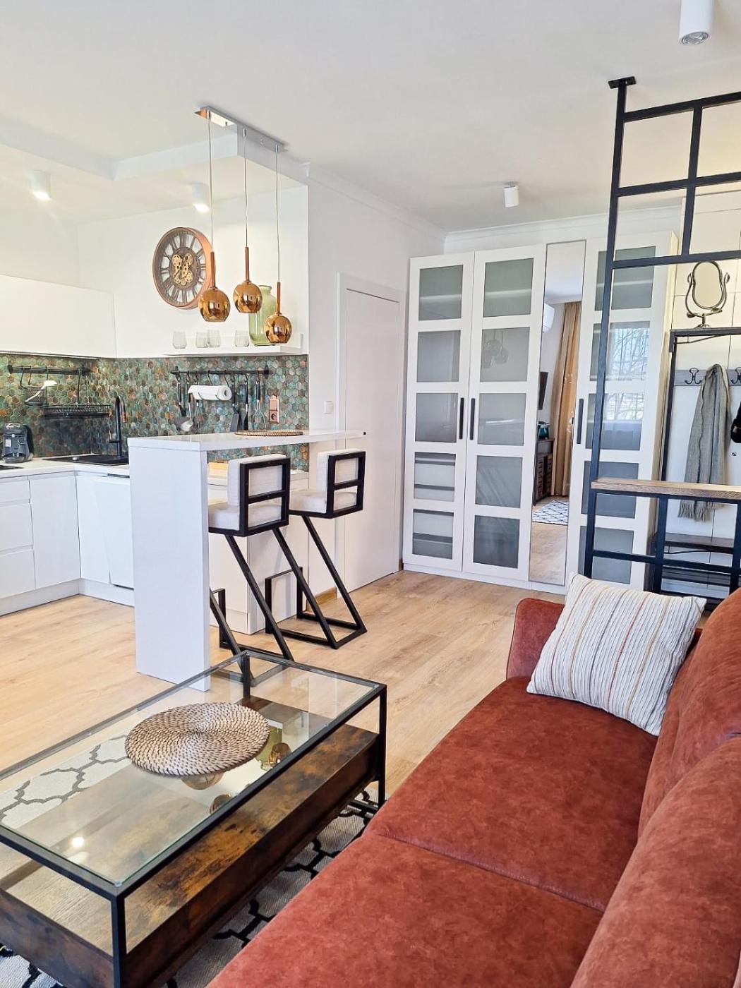 Studio typu Deluxe. The studio features a private entrance, a tea and coffee maker, as well as a private bathroom boasting a shower and a hairdryer. Meals can be prepared in the kitchenette, which features a stovetop, a refrigerator, a dishwasher and kitchenware. This air-conditioned studio comes with a dining area, a flat-screen TV with streaming services a washing machine and a terrace. The unit has 1 bed. Studio - 2 osobowy. Powierzchnia pokoju ok.: 24 mkw.