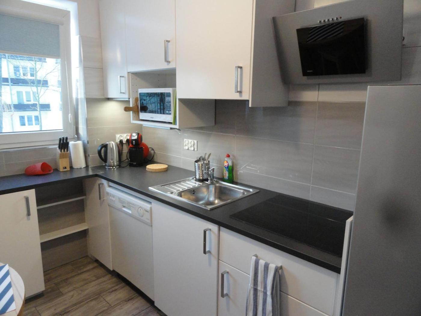Apartament z 2 sypialniami. This apartment features 2 bedrooms, a kitchen and 1 bathroom with a shower and a hairdryer. Guests can make meals in the kitchen that has a stovetop, a refrigerator, a dishwasher and a microwave. Boasting a balcony, this apartment also features a wardrobe, an electric kettle and a flat-screen TV. The unit has 4 beds. Apartament - 5 osobowy. Powierzchnia pokoju ok.: 50 mkw.