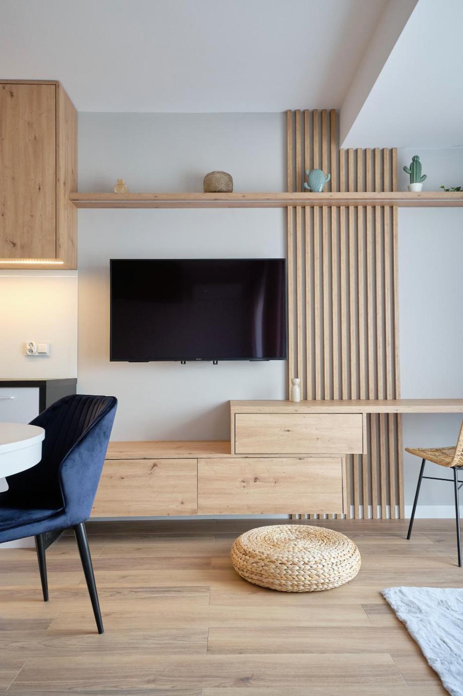 Studio. Meals can be prepared in the well-fitted kitchen, which is fitted with a stovetop, a refrigerator, a dishwasher and kitchenware. The studio offers air conditioning, a washing machine, a balcony with a quiet street view as well as a private bathroom featuring a shower. The unit offers 1 bed. Studio - 2 osobowy. Powierzchnia pokoju ok.: 30 mkw.