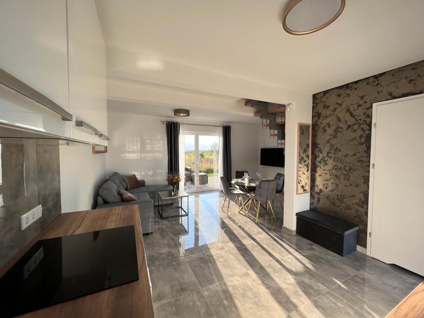 Dom z 2 sypialniami. Featuring a private entrance, this holiday home consists of 1 living room, 2 separate bedrooms and 1 bathroom with a walk-in shower and a hairdryer. Guests will find a stovetop, a refrigerator, a dishwasher and kitchenware in the well-equipped kitchen. The holiday home also offers a barbecue. Boasting a terrace with lake views, this holiday home also provides a tea and coffee maker and a flat-screen TV with streaming services. The unit offers 4 beds. Dom wakacyjny - 6 osobowy. Powierzchnia pokoju ok.: 60 mkw. ;